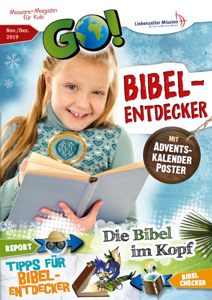 · Report aus Sambia: Die Bibel im Kopf · Report aus Burundi: Endlich gibt es die Bibel auf Kirundi! · Fotostory aus Berlin: Die Bibel ist ein Schatz! · Poster: Adventskalender · Bibelchecker: Tipps für Bibelentdecker · Spezial: Bibel-Rätsel · Kuntibunti: Detektiv Lupe auf Spurensuche · und viele weitere Themen