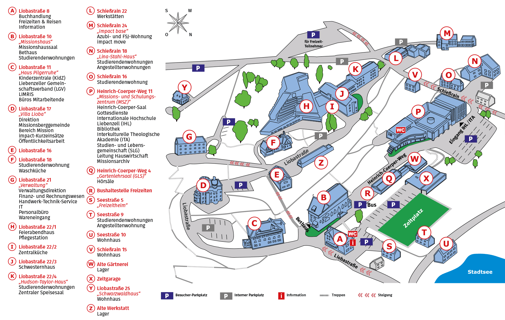 Auf unse­rem Lage­plan ist das mit “P” gekenn­zeich­ne­te Gebäu­de das MSZ in dem die Ver­an­stal­tun­gen der Mis­si­ons­berg­ge­mein­de statt­fin­den. Zudem siehst Du wo sich die aus­rei­chend vor­han­de­nen Park­plät­ze befin­den. Der Plan hilft Dir, Dich schnell und ein­fach zu ori­en­tie­ren, damit Du ent­spannt ankom­men kannst. Wir freu­en uns auf Dei­nen Besuch!